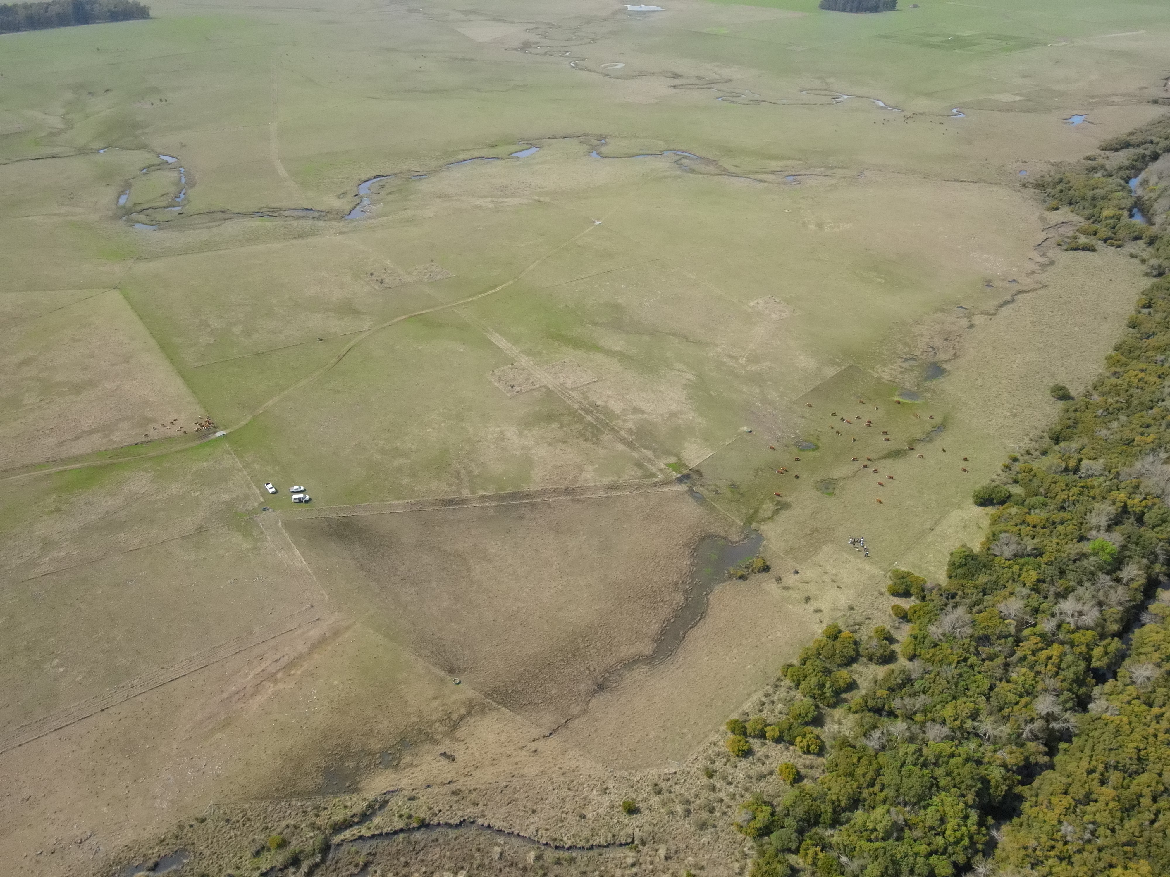 Situado en la cuenca de basalto (una vasta zona de casi 4.5 millones de hectáreas), el foco del proyecto es evaluar la intensificación del pastoreo sobre campo natural. Para lograrlo, se han instalado tres sistemas de diferente intensidad, cada uno ocupando 50 hectáreas y combinando vacunos de cría con ovinos (borregos Merino) en una relación de 2:1.