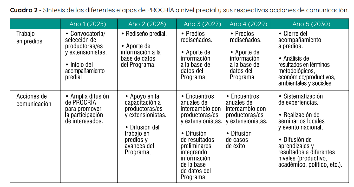 El Programa de Innovación para una Ganadería de Cría Sostenible, PROCRÍA, avanza como una iniciativa interinstitucional para promover sistemas de cría más productivos, resilientes y ambientalmente responsables. El Programa cuenta con un componente de comunicación desde su inicio, lo que permite planificar acciones y diseñar estrategias adaptadas a las necesidades de cada etapa de su implementación.